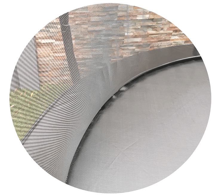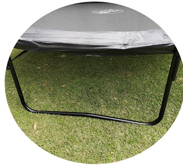 We have added a fibreglass top ring to our trampolines to increase safety, net tightness and reduce stretching over time. Whilst improving safety, this feature also helps the trampoline look great for years to come.