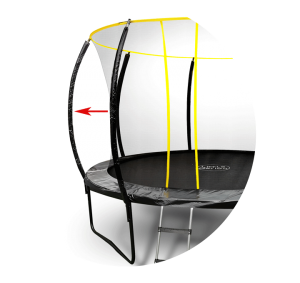 The zipless entry/exit is just another example of how we’ve considered safety, as a priority when designing our trampolines. The overlapping flap closes behind your child as he or she slips into the jumping area. Security in the netted area is ensured by the zipless entry closure and there is no danger of the trampoline accidentally being left open. We think that we’d be hard pressed to find a jumping, excited, energetic child to stop and zip or velcro up the entrance/exit……each and every time they feel like a bounce for fun!!