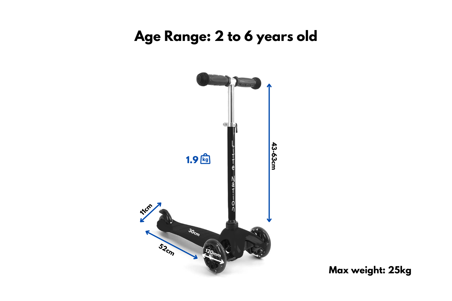 Thanks to its 3-wheel design and light 1.9kg weight, our scooter provides stability and easy maneuverability for little ones.