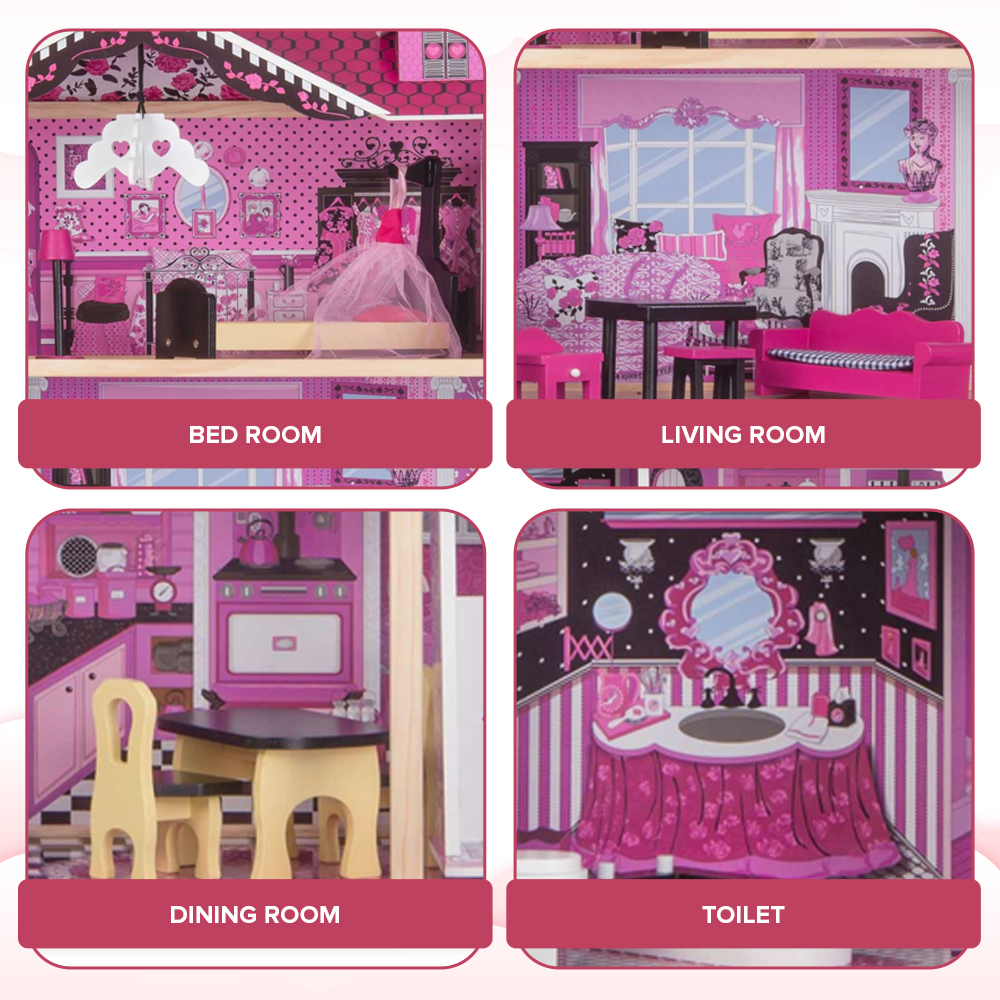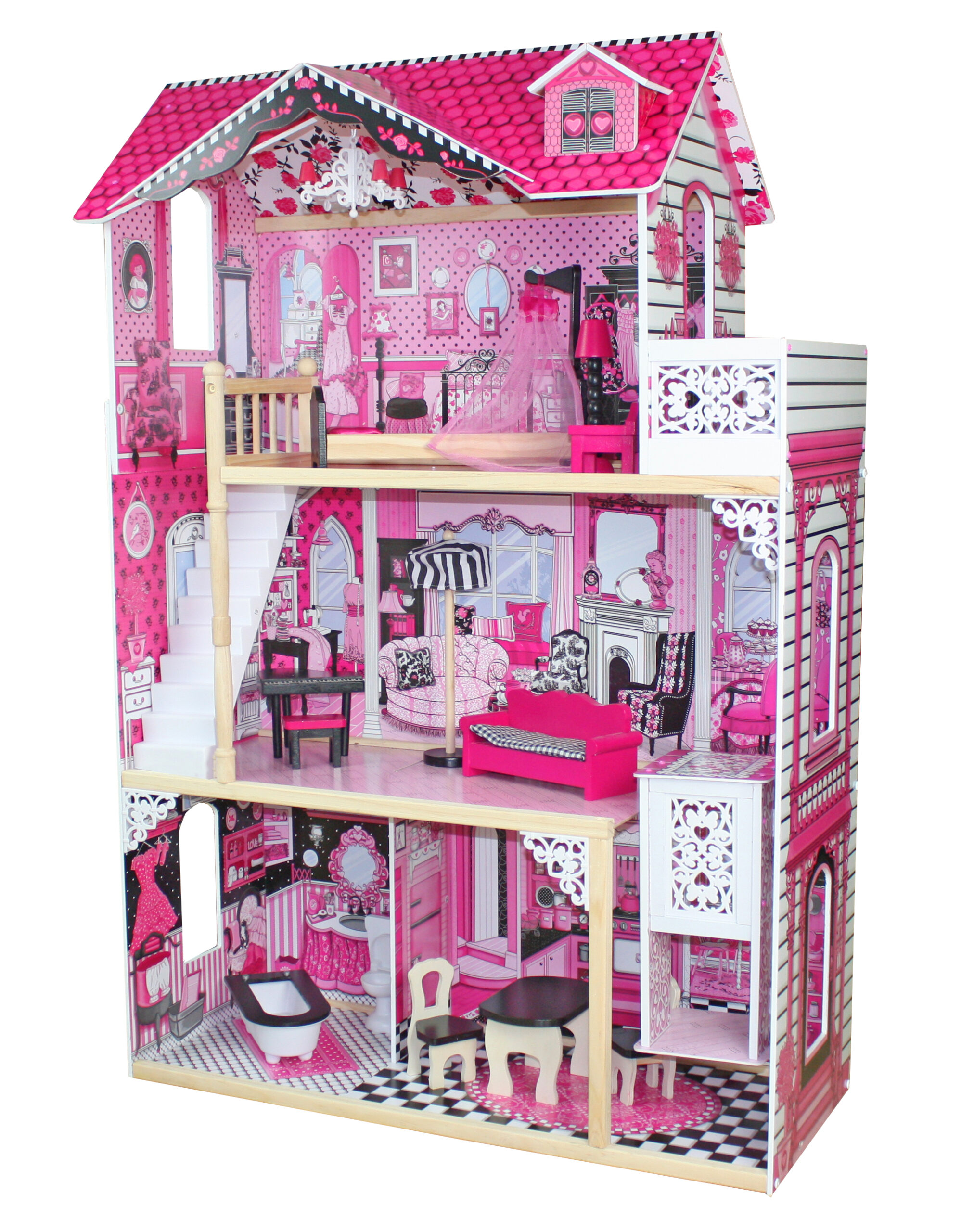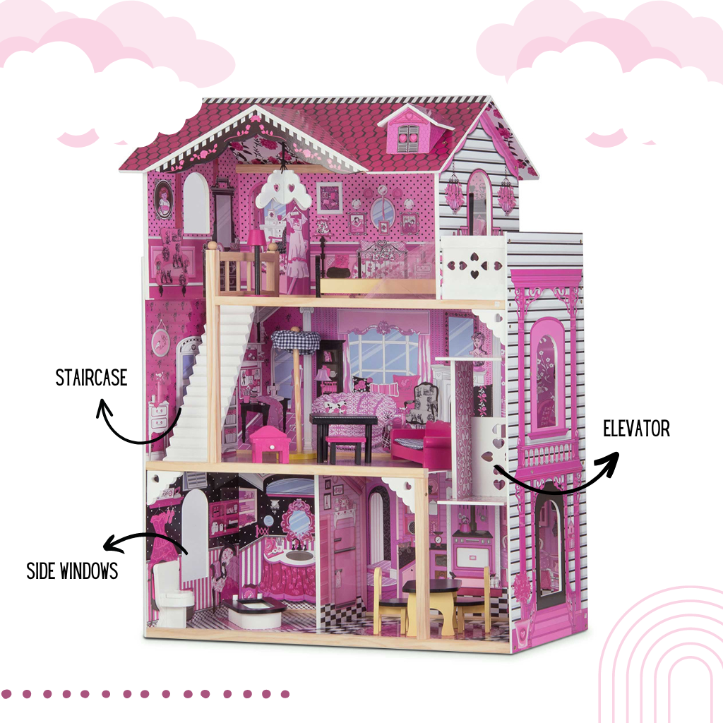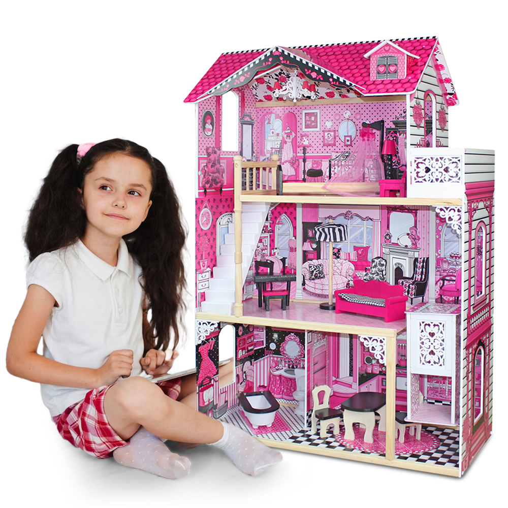 The Eva Dollhouse is spacious enough to fit Barbie-sized dolls and can entertain multiple children at once.
