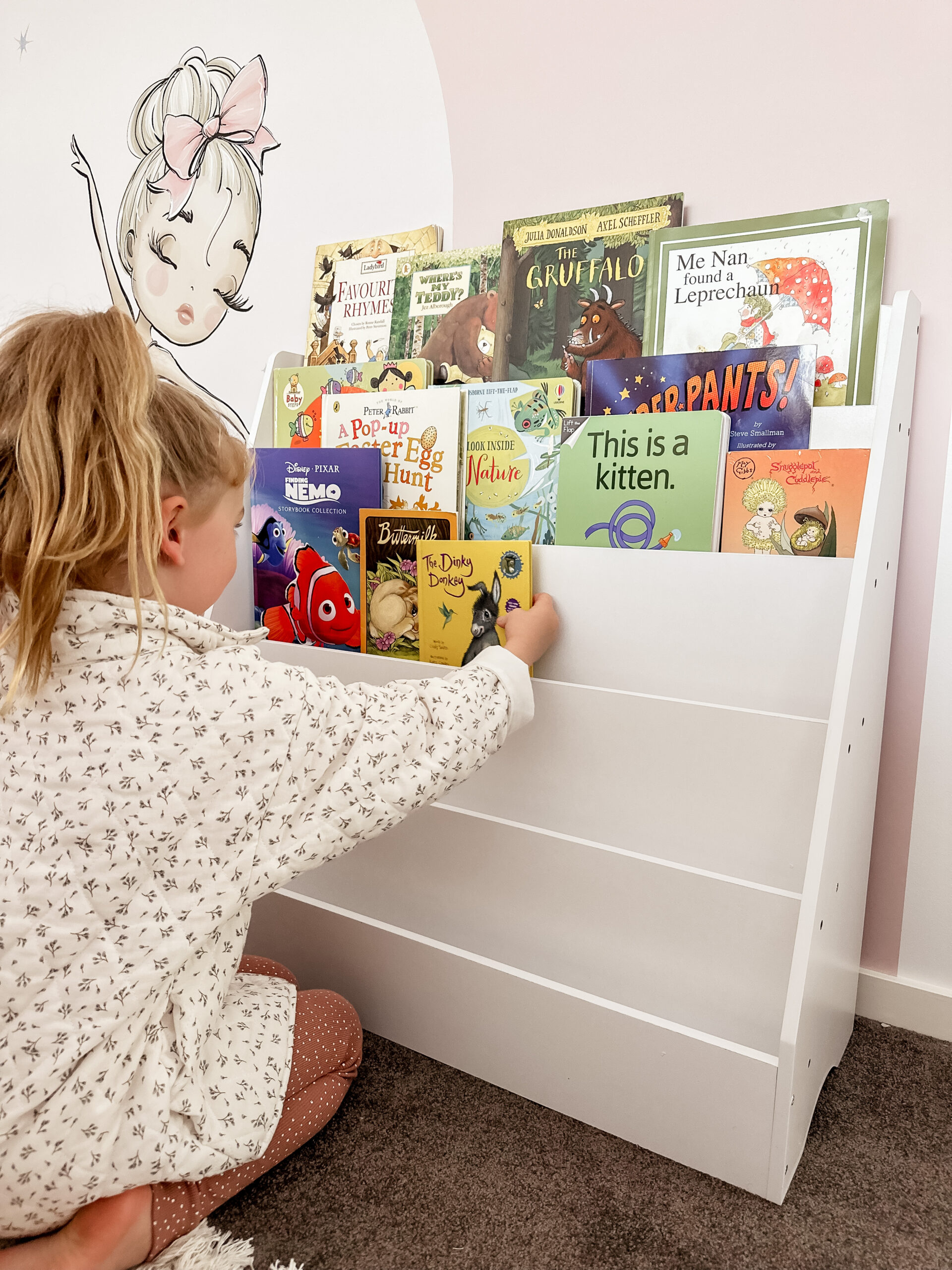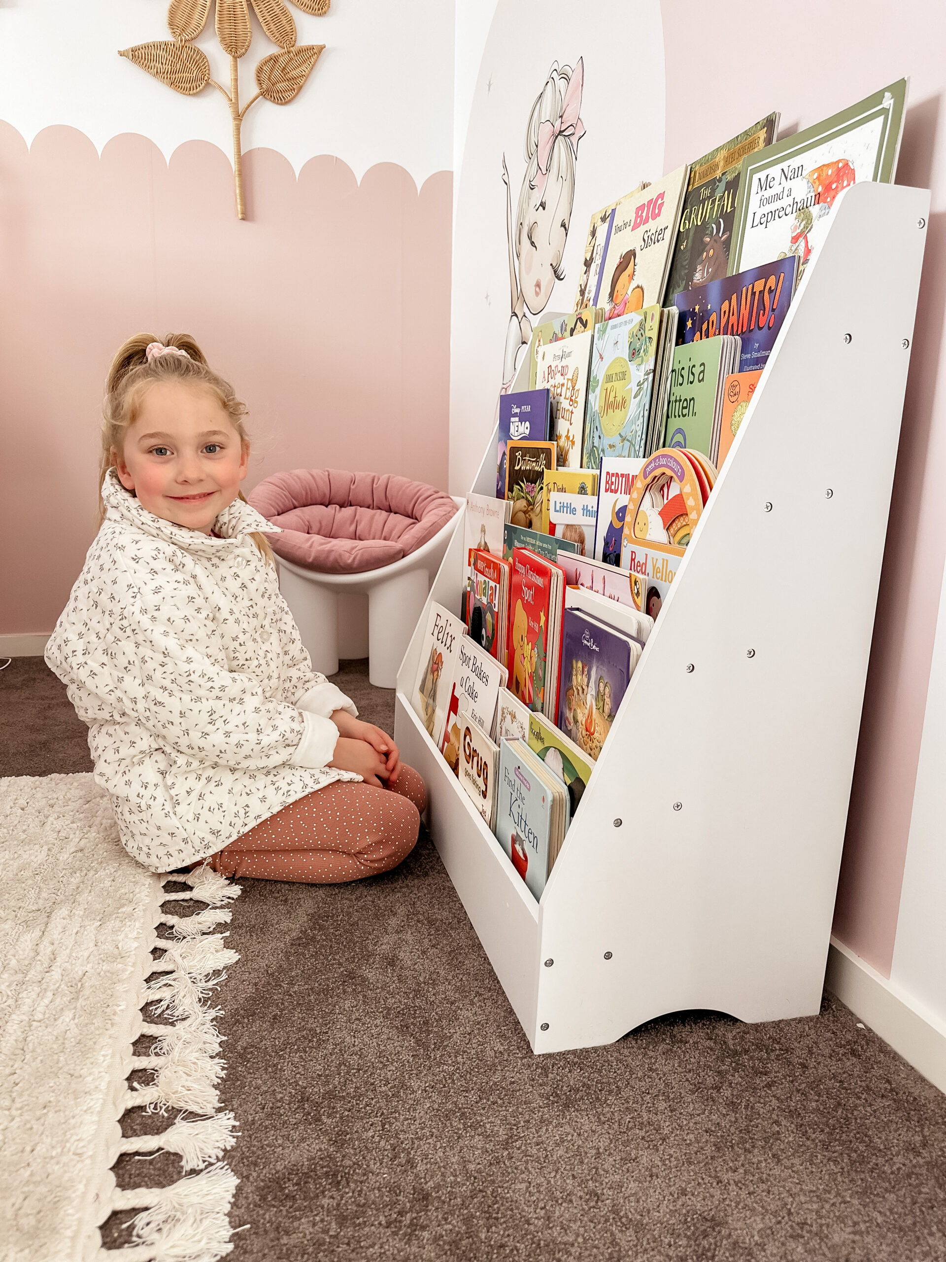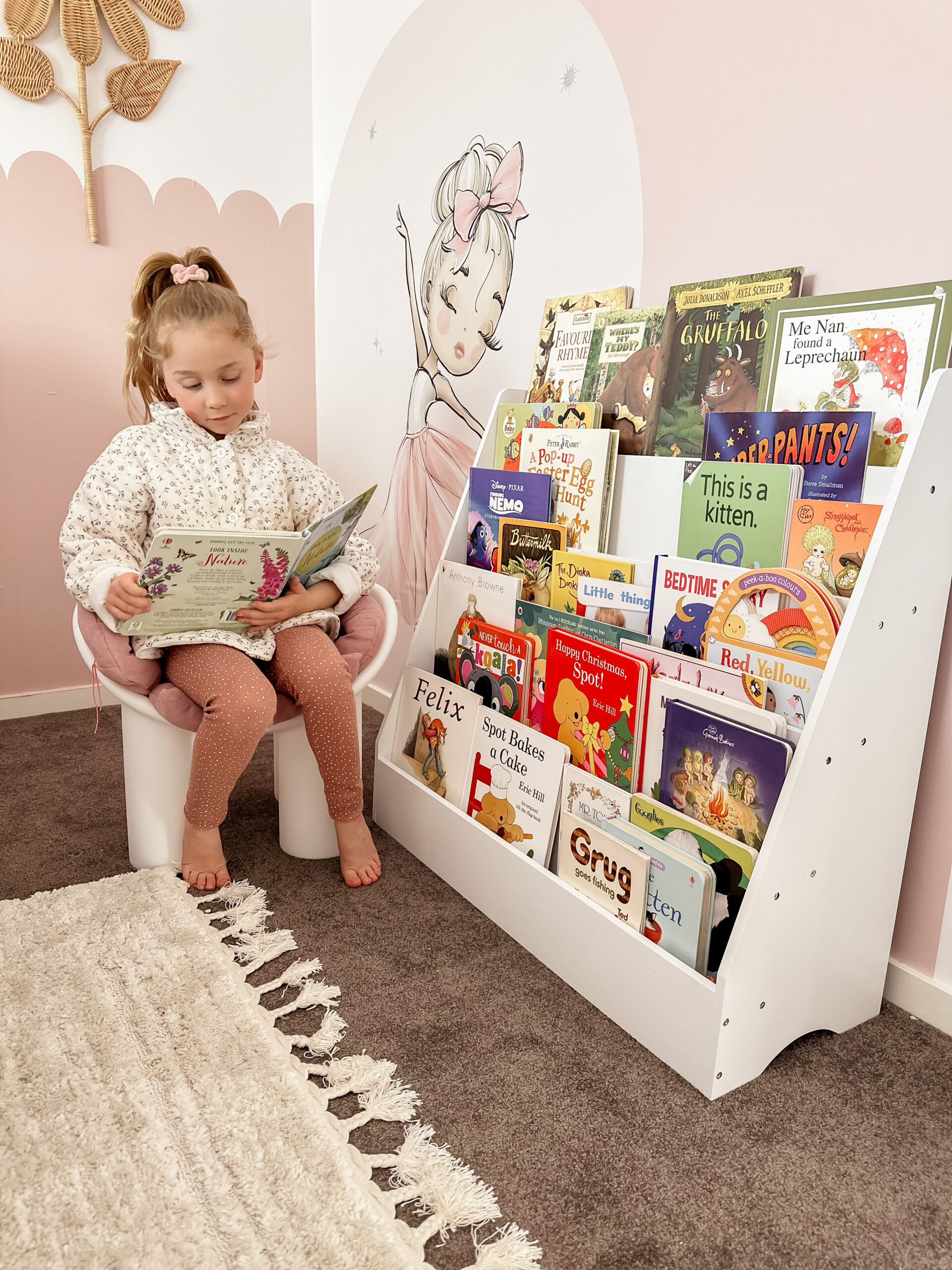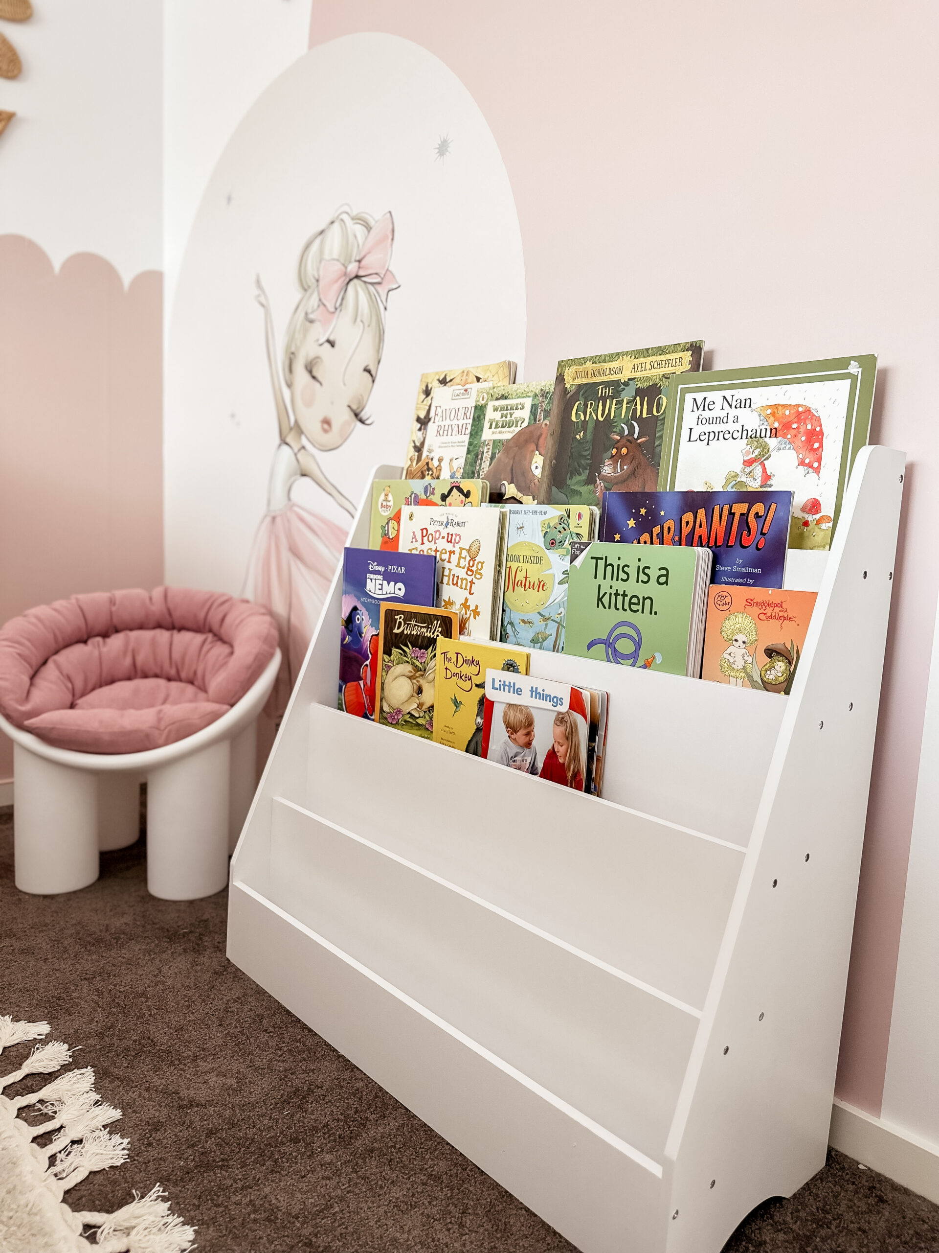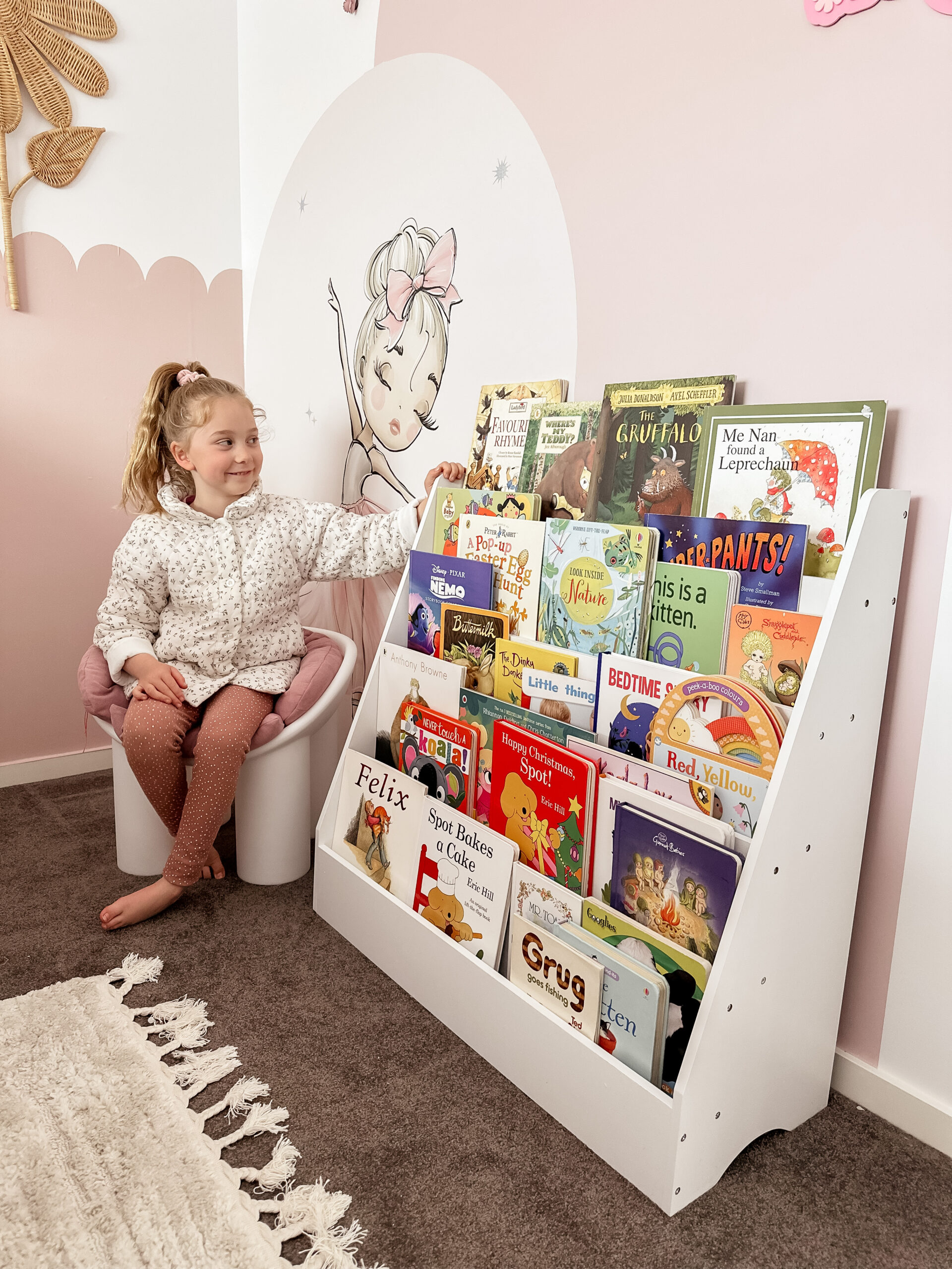 Five deep layers of fabric sling sleeves accommodate all sizes of books and magazines.