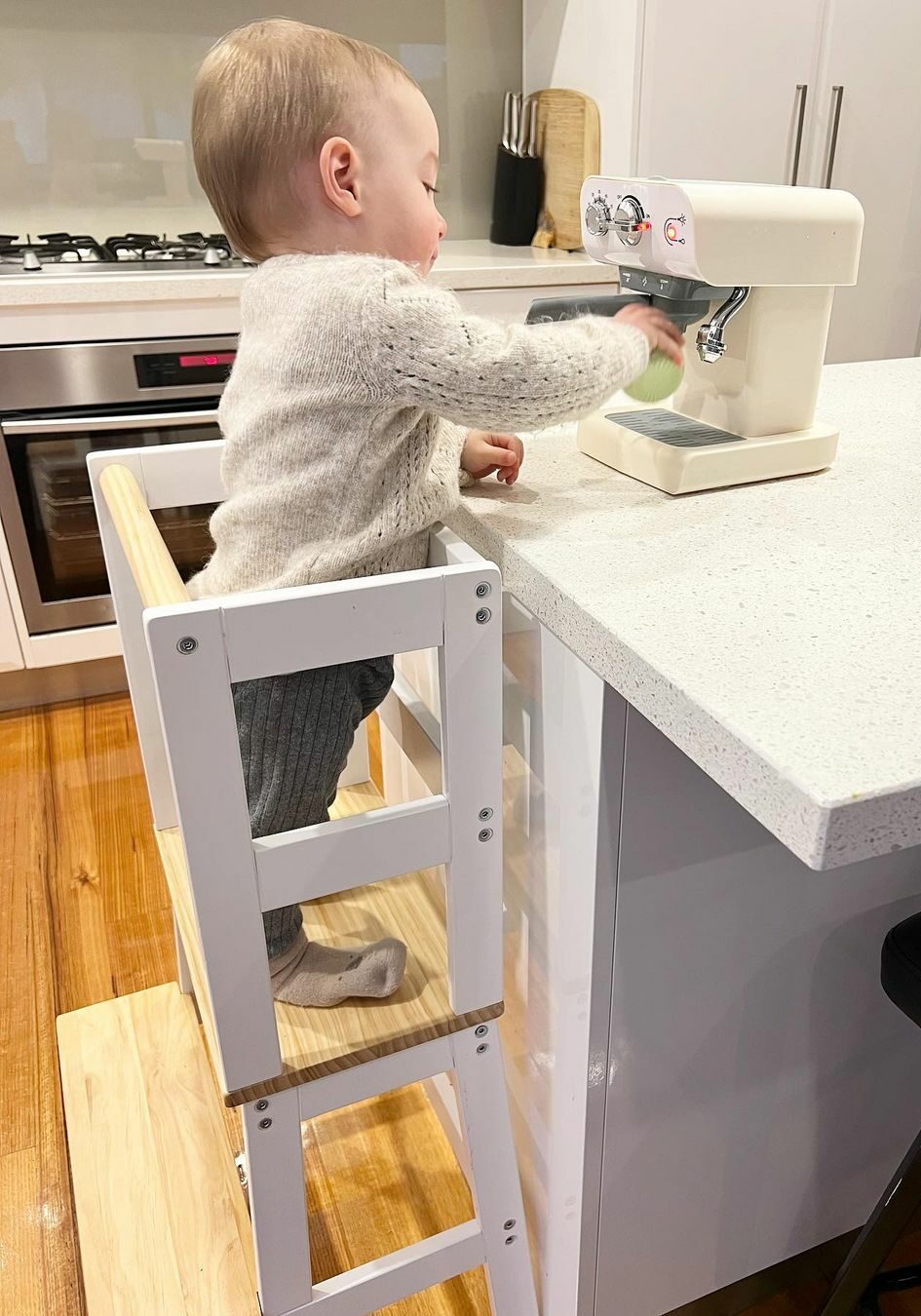 Boasting a sleek, minimalistic Scandinavian design, this learning tower integrates beautifully into any home décor.