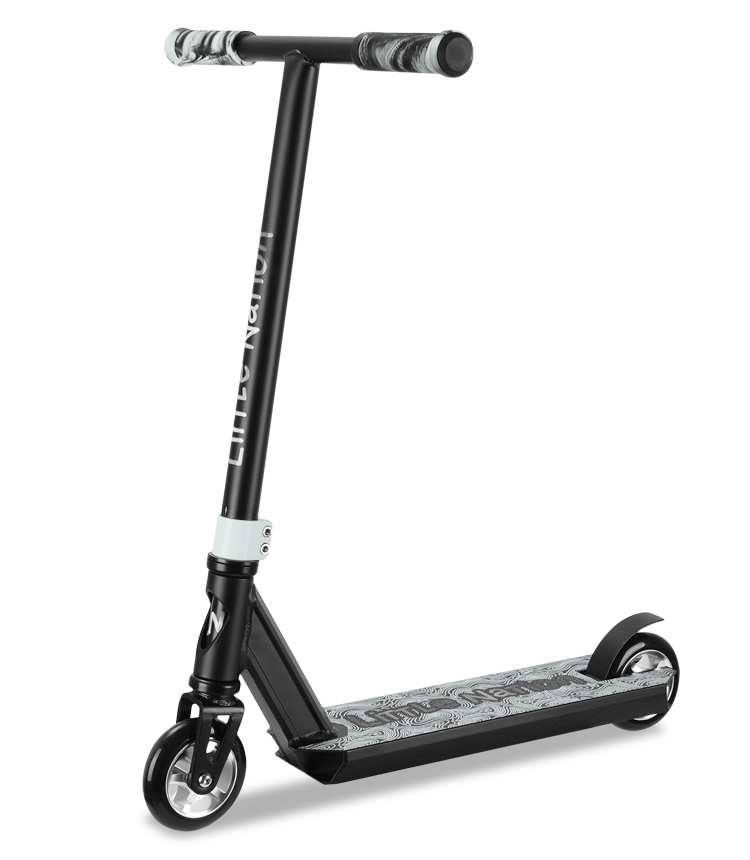 The Little Nation Stunt Scooter, built from quality Aluminum 6061 T6 deck and a robust steel T-bar, ensures durability and sturdiness.