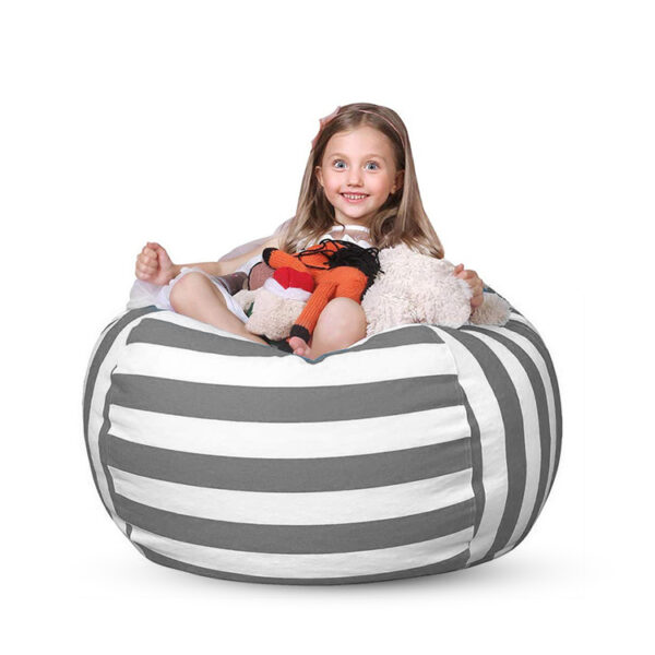 Stuffed Animal Toy Storage Bag – 32 in – Grey and White Stripes