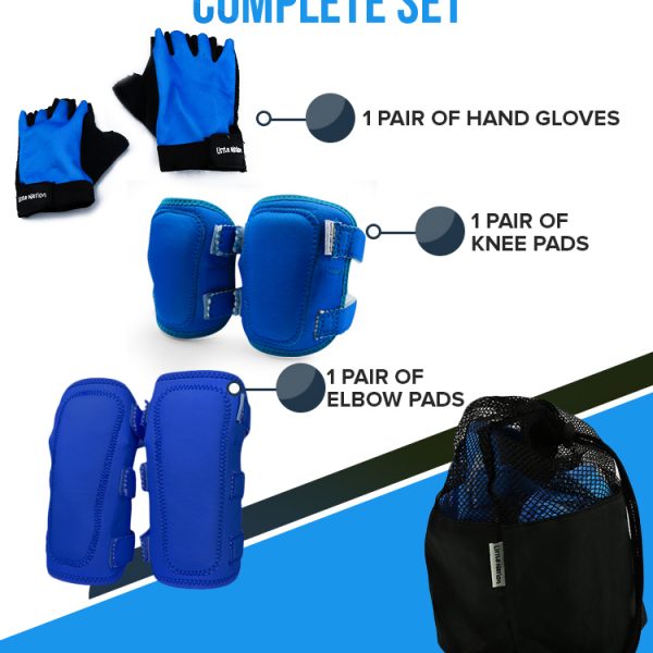 Blue Elbow Pad, Knee Pad and Gloves Protective Set