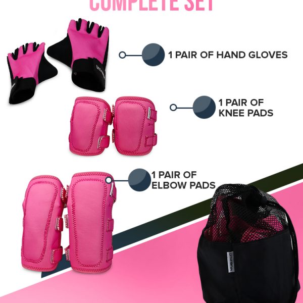 Pink Elbow Pad, Knee Pad and Gloves Protective Set