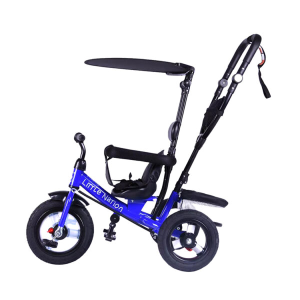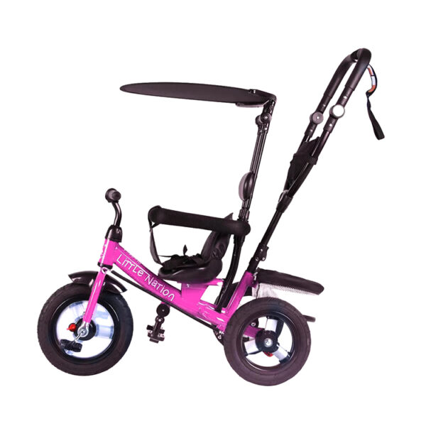 Little Nation trikes are designed to grow with you child. Featuring the ‘smart parent steering system’ which enables the adult pushing the trike to control the steering via the handle. Kids love the Little Nation push trike because they can see a full 360 degrees. Featuring rubber coated EVA tyres which are maintenance free and never need pumping up. Parental brake system, carry basket and adjustable canopy.